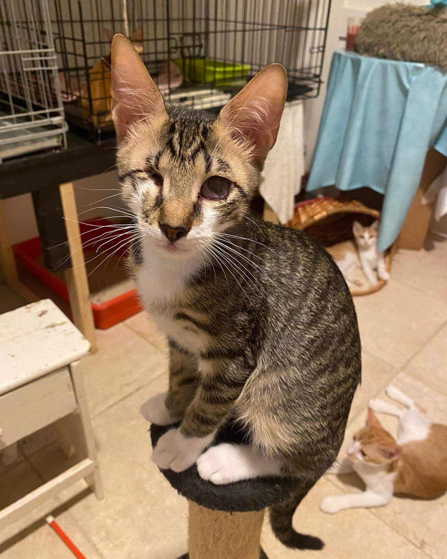 Jack aka Captain Jack is a one eyed male (kitten