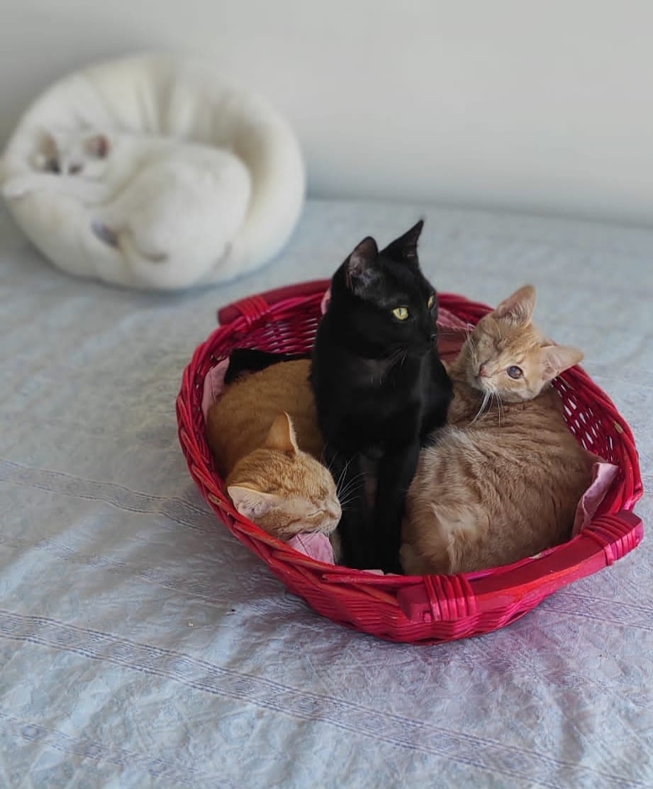 Sabrina is the black one, aka Beenaand she is very energetic. She likes to be around Tomette & Nala (the ginger ones) so def Beena has to go in a home where there is a ginger cat