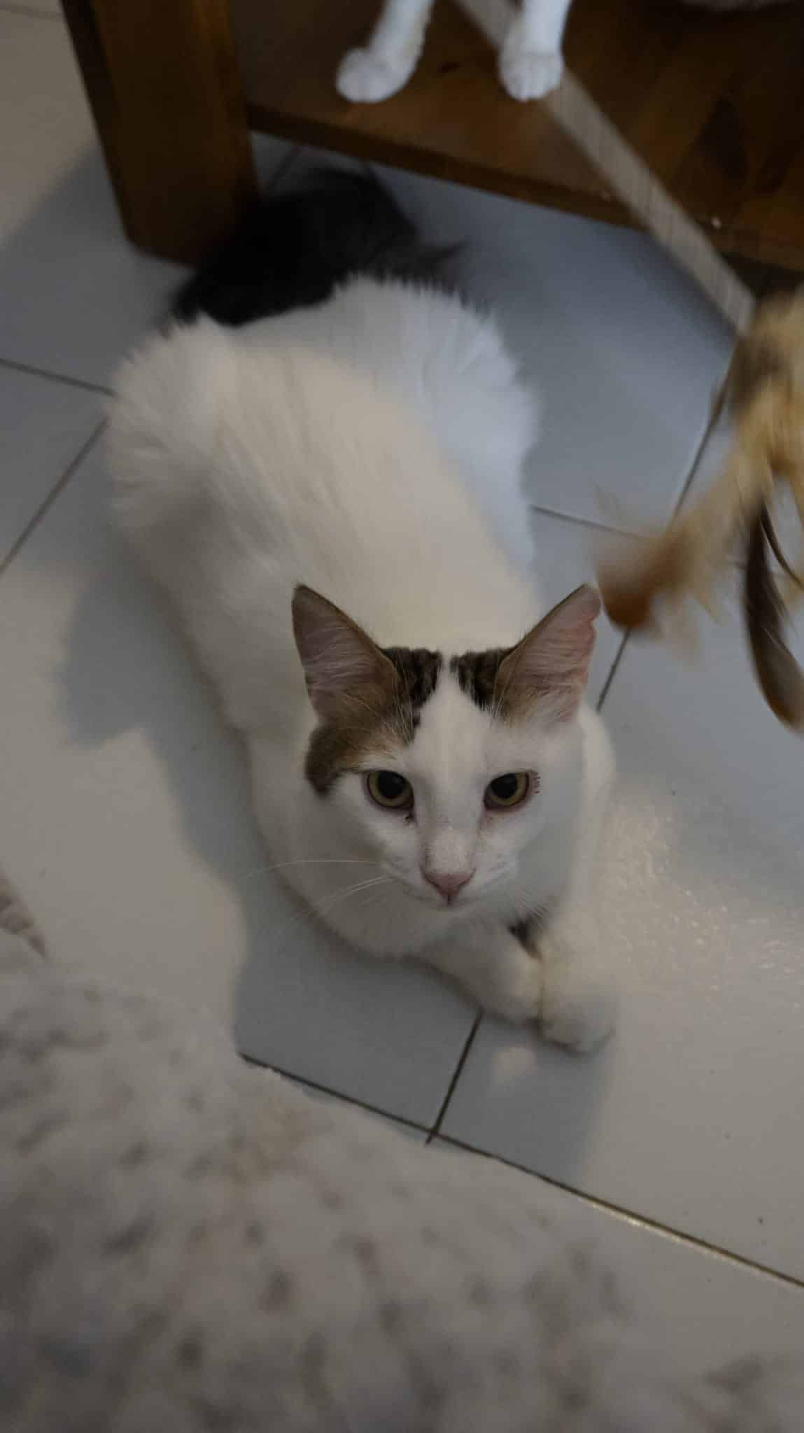 Bjorn is the white & grey one & his favourite cat is Snowy the white one. He is obsessed about her They play a lot…so it would be nice if they get adopted together